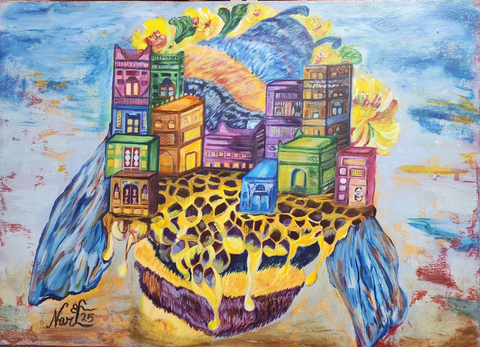 بائعة الورد بين التراث والجمال ..حبيت امزج بين الجمال وتراثنا في لوحه تتكلم عن اشراقه اجمل لمستقبل يملؤه التفاؤل بغدا اجمل .تبعث الطمانينه وراحة مكنونه فيها لمن يشاهدها