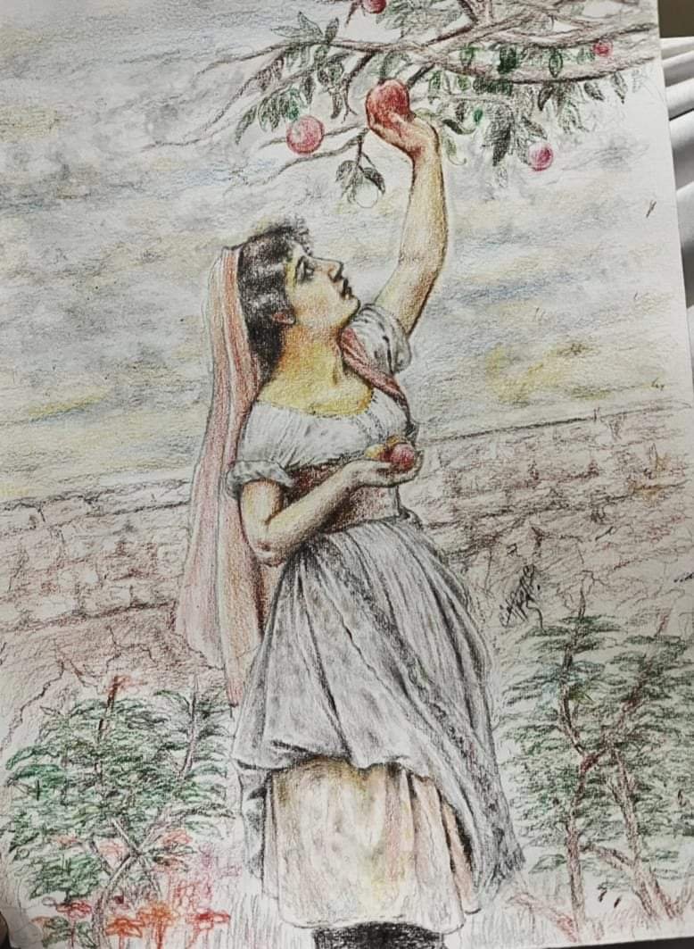 شجرة التفاح .محاكاه للفن العالمي باضافة لمسات وباسلوب يعطي للعمل جماليه خاصه