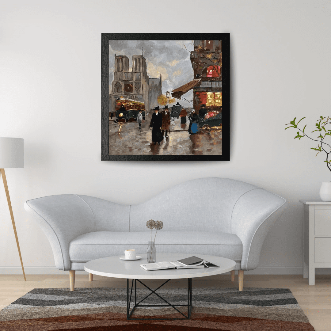 A reinterpretation of the work of the famous urban landscape artist Édouard Cortès, who was famous for his enchanting paintings of Paris