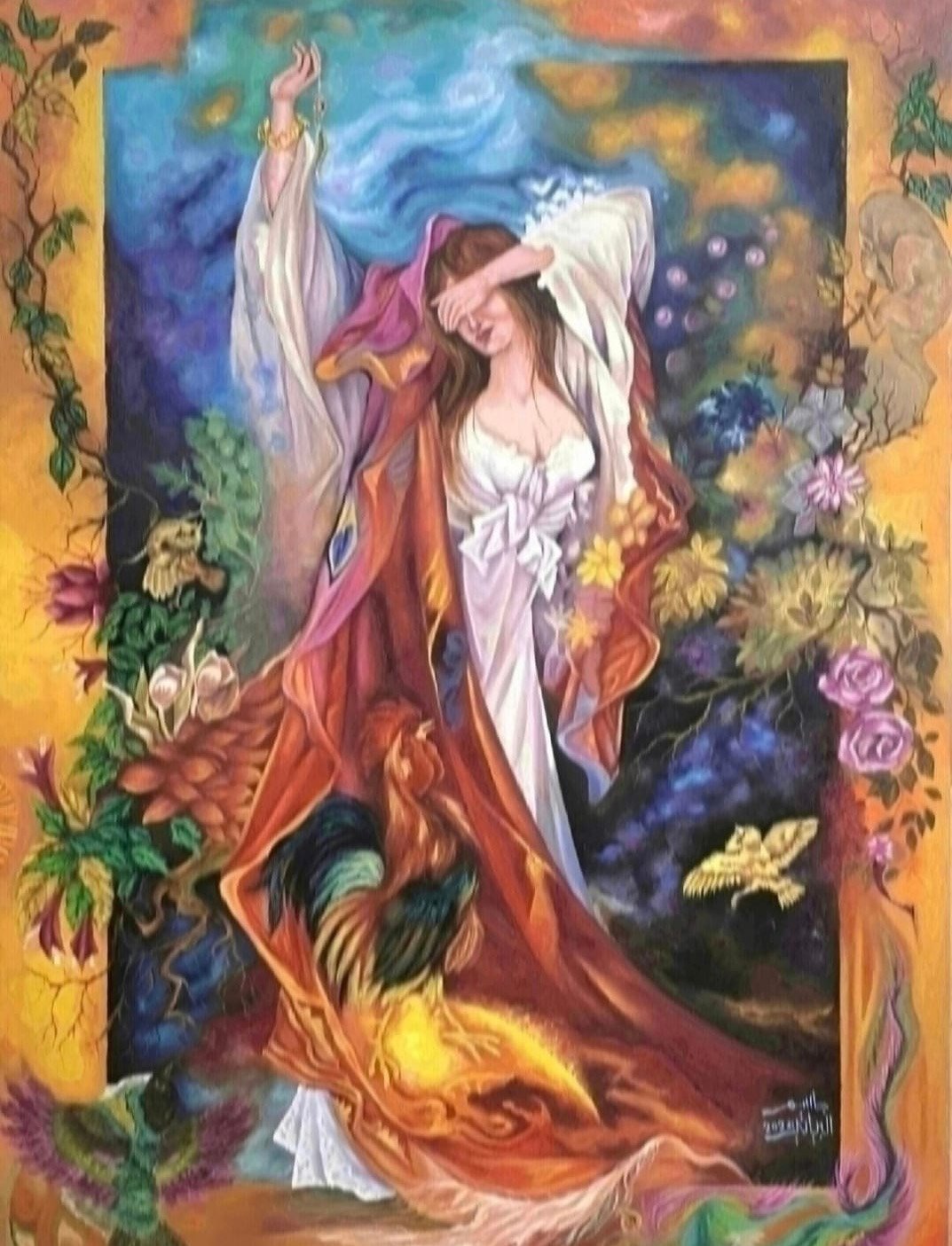 رباعيات الخيام لوحة فنية الوان زيتية على كانفاس