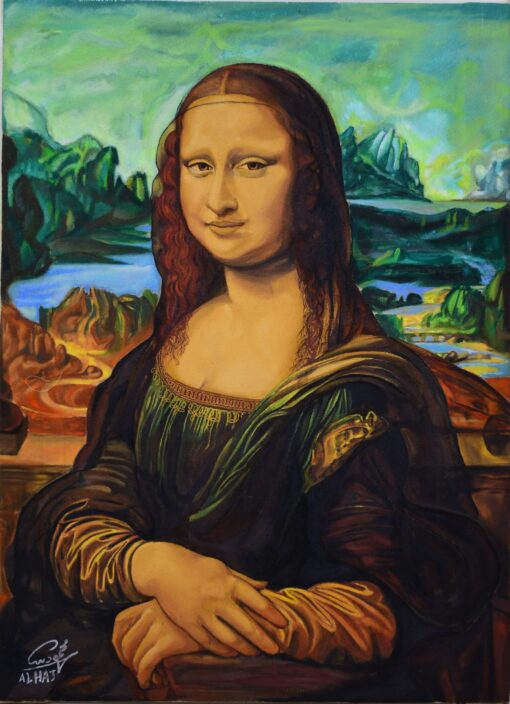لوحة طبق الأصل للوحة الموناليزا للفنان ليوناردودافنشي اردت إحياء الفن على الكفن