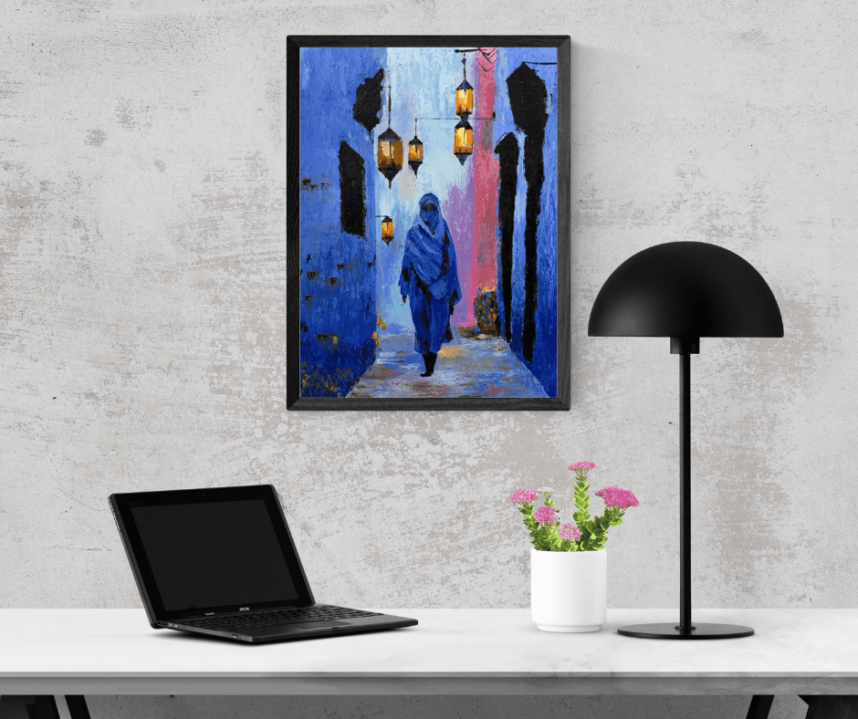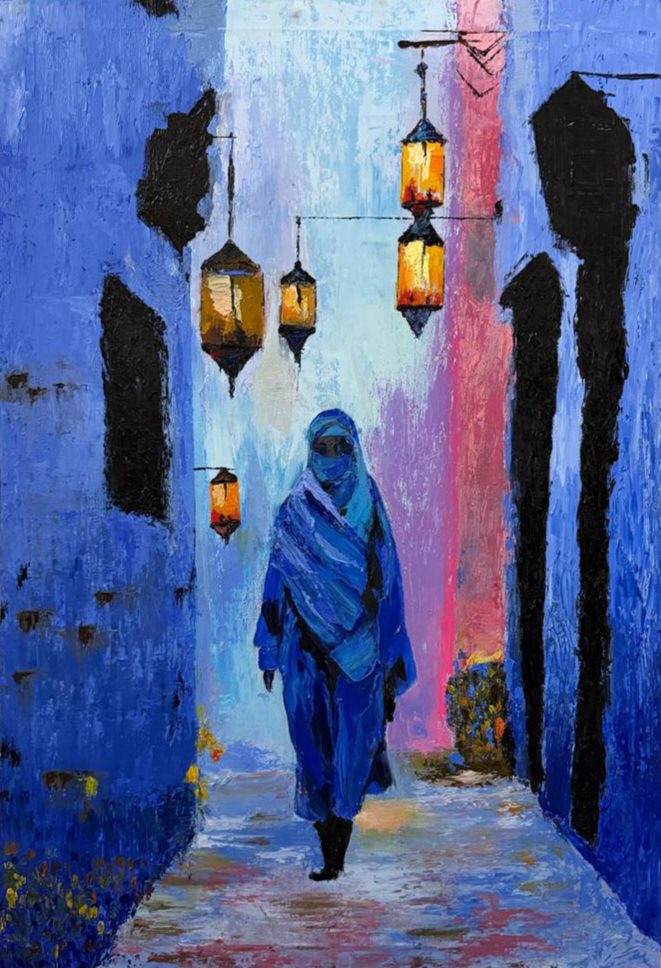 ”تراتيل زرقاء” هي رحلة بصرية تجسد صمت الأزقة العتيقة؛ حيث تذوب الشخصية المركزية في سكون الجدران النيلية، بينما تكسر الفوانيس الذهبية حدة البرودة بنبضات من الدفء والضوء.