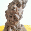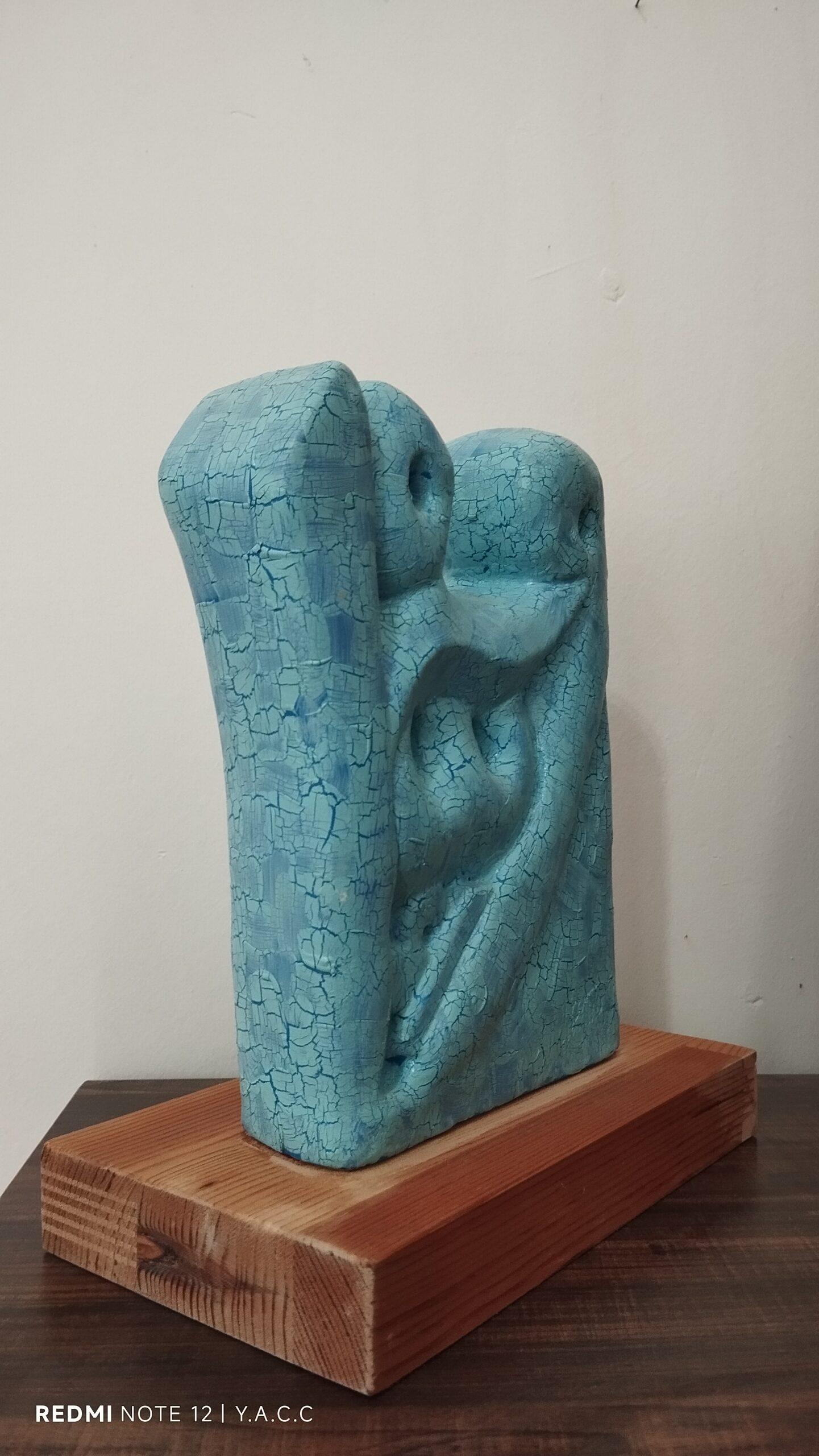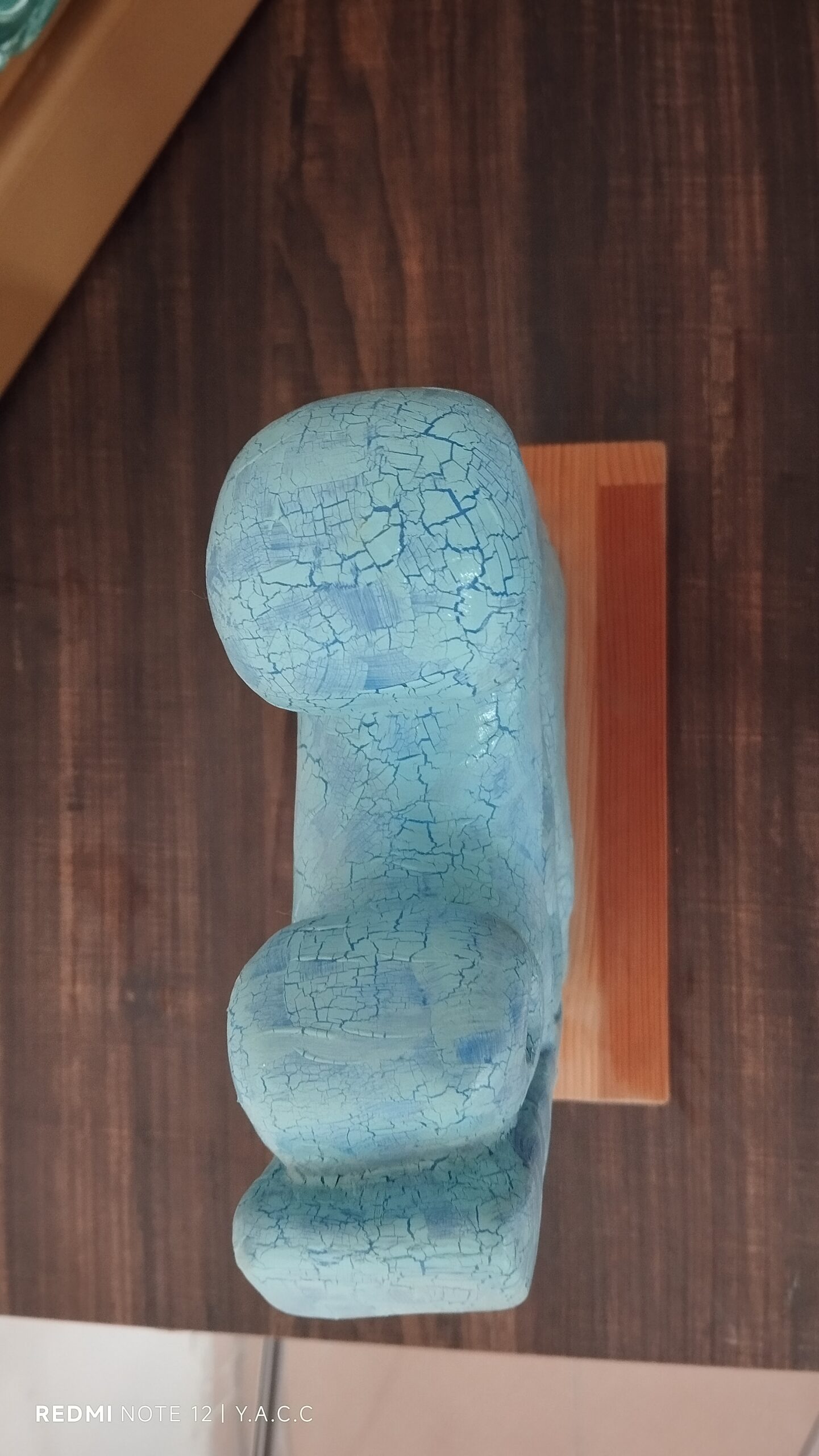A ceramic artwork titled Arabic language movements inspired by (Dhimma, Medha, Silence, Tension, Hamza, Kisra, and Maqsara) Work measures (16×5×22) with fear base (12×22××3)