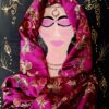 Hand painting and fine art combining multiple materials, acrylic, oil, canvas, synthetic hair and jewelry on canvas