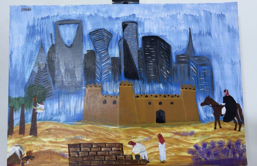 لوحة تجسد تطور المملكة من التراث القديم إلى الحداثة المعمارية