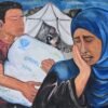 “لوحة فنية تجسد جسر شهارة التاريخي في محافظة عمران – اليمن، أحد أبرز المعالم المعمارية التي تعانق الجبال وتروي حكاية حضارة ضاربة في القدم، بألوان تنقل روح المكان وعمقه