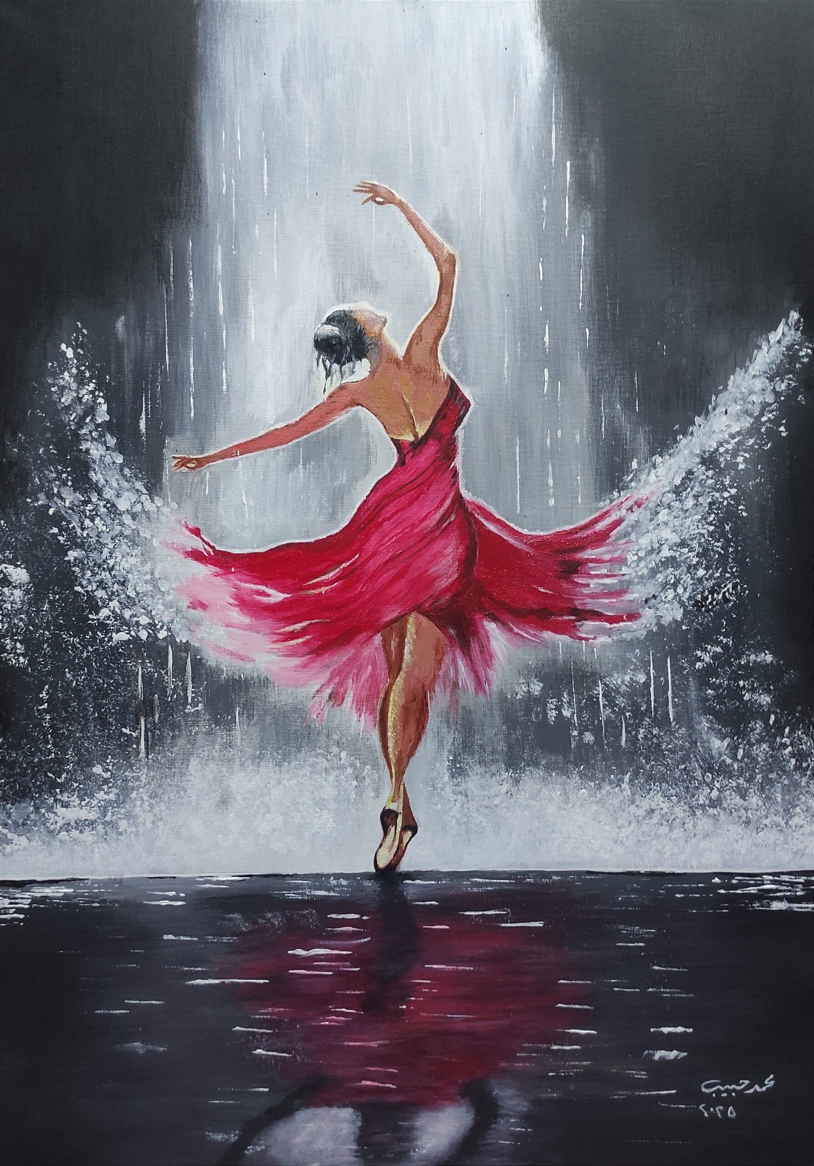 لوحة أصلية تجسّد التحرّر حين يتحوّل المطر إلى موسيقى