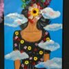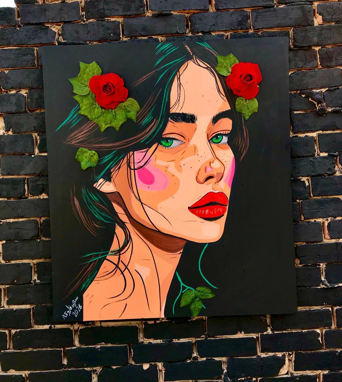 رسم هاند ميد اكريلك علي قماش مقاس 80*90 مع بعض الورد الاحمر البارز