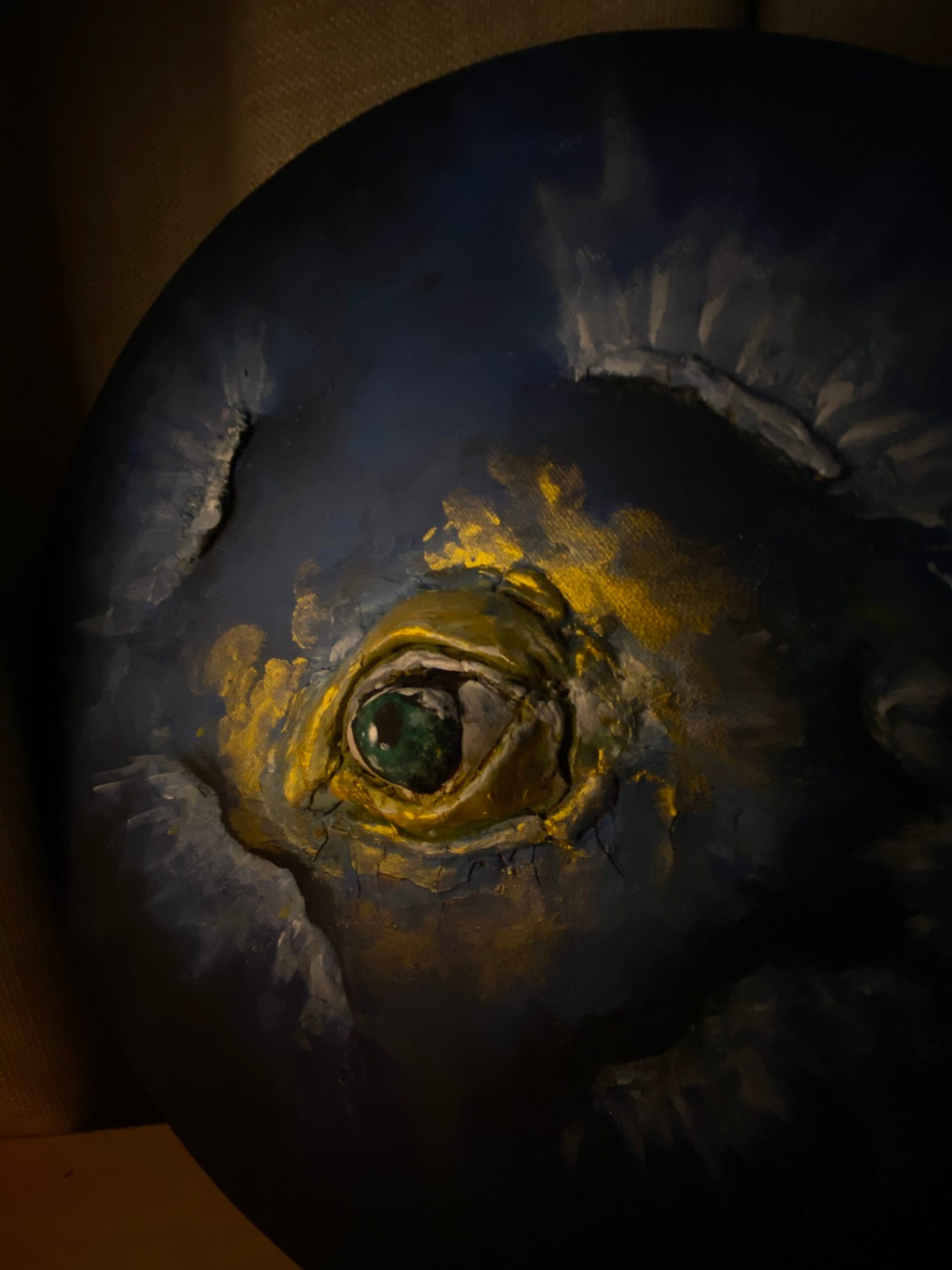 لوحة خالية من الزوايا دائرية الشكل ،مشكلة ب طريقة تجعل العين بارزة من القماش لتحقق اسمها والذي هو عين الارض
