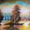 لوحة تعبر عن طفلة مبتسمة بهوية يمنية مرسومة على قماش بألوان اكريلك مقاسها 70×50