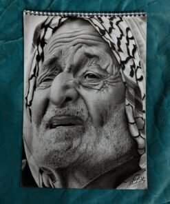لوحة بورتريه واقعي مفعمة بالتفاصيل، تُجسد وجه رجل مسن كأنه خريطة حيّة للزمن. تتوزع التجاعيد الدقيقة على الجبهة وحول العينين والفم، مرسومة بعناية تُبرز كل خط وكأنه أثر لذكرى أو تجربة مرّت به. العينان هما مركز الثقل في العمل؛ نظرة عميقة، ثابتة، تحمل مزيجًا من التعب والحكمة والصبر، كأنها تختزن سنوات طويلة من المعاناة والقصص غير المحكية.