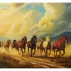 استخدام اللون الأصفر الذهبي والبنفسجي يضفي توازنًا بصريًا بين الدفء التاريخي والبعد التأملي. كما تعكس الخطوط المتكسّرة والانحرافات الهندسية رؤية معاصرة لإعادة تشكيل التراث بصياغة حداثية. العمل يمثل حوارًا بصريًا بين الماضي الأثري والرؤية التشكيلية الجديدة.