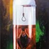 يستحضر الفنان ذاكرة العلا العريقة من خلال بناء أثري يتوهج بألوان الصحراء الذهبية، كرمز للفخامة والعمق الحضاري. تتناثر حوله تكوينات هندسية تضم نقوشًا ورموزًا مستلهمة من الرسوم الصخرية التي تميزت بها المنطقة، مما يخلق توليفة بين المعمار الثابت والرموز الحية.