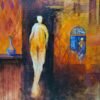 The work addresses the idea of absence and the resulting longing, as well as the concept of loneliness and the need for a partner. The orange color enhances the expressive and emotional energy of this emotional state, while the presence of the empty wooden vase raises many urgent human and emotional questions, most notably: Is there anything worth all this absence?