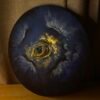 لوحة تعبيرية لكلب بملامح رشيقة وأذنين بارزتين، تنبض بألوان حارة فوق خلفية باردة، تعكس حضورًا هادئًا ممزوجًا بطاقة لونية جريئة